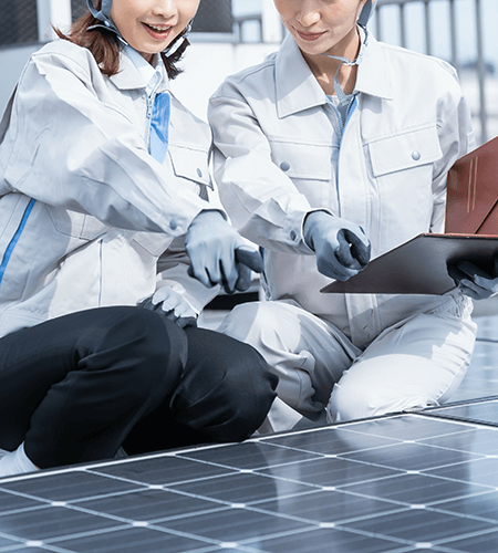 太陽光発電システムの設計を行います。これには、建物や敷地の特性に合わせたパネルの配置や取り付け方法の計画立案、出力最大化のための最適なインバーター(変換装置)の選定などが含まれます。